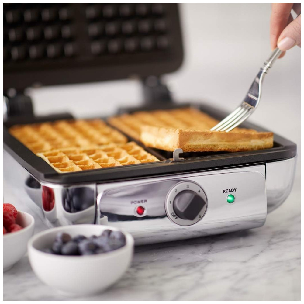 Máquina de Waffle Totalmente Revestida 4 Fatias 850W, prata, 110v, ALL CLAD WD822D51, Prateado