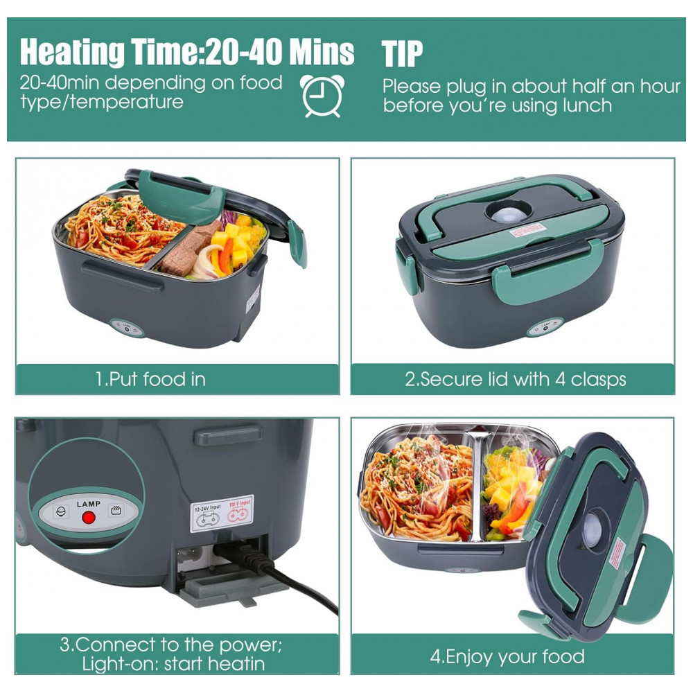 Compatível com homeoffice de 110V e carrinho de 12V24V, basta conectar e aquecer sua comida em cerca de meia hora com a tecnologia de aquecimento de temperatura constante PTC de 70W.