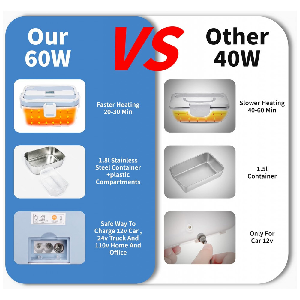 FORABEST Marmita Elétrica 2 em 1 Portátil 1.5L com Divisórias, 24, 12V, 110V 50W, Branca