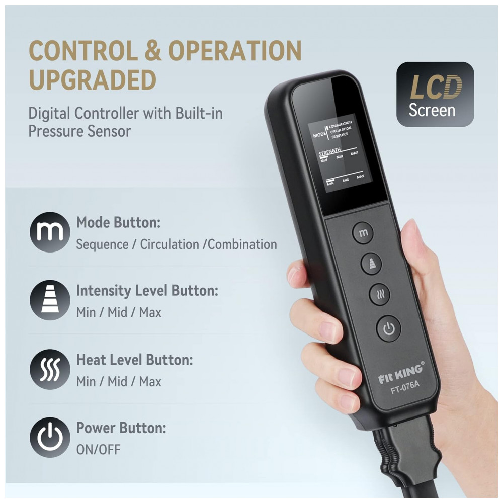 EXPERIÊNCIA ATUALIZADA Atualizado com sensor de pressão embutido, diferentes usuários podem desfrutar da mesma intensidade de massagem sob o mesmo modo e intensidade, mesmo que tenham tamanhos diferentes de pés, panturrilhas e coxas