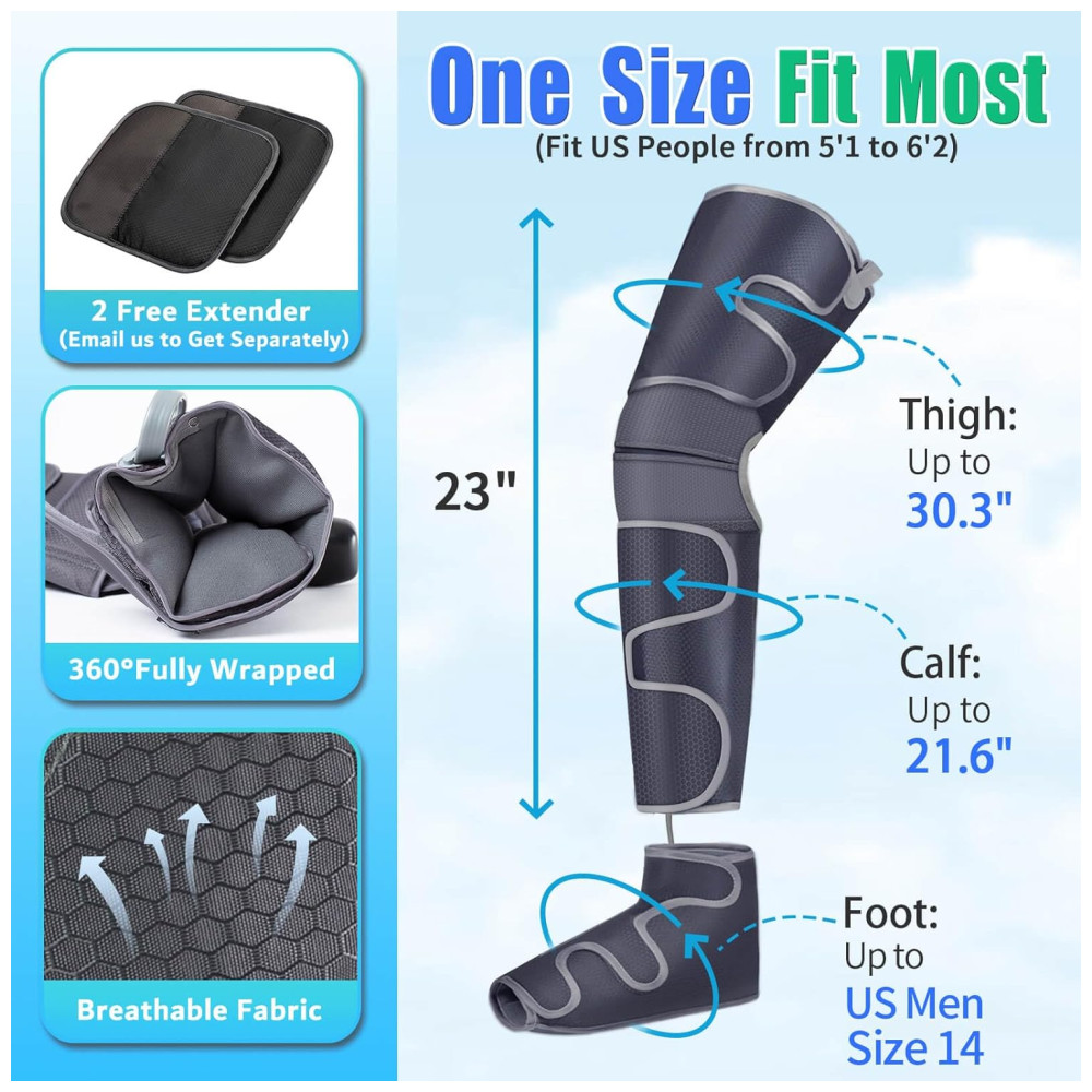 Função de desligamento automático O massageador de pernas com calor está equipado com um temporizador de desligamento automático de 20 minutos para evitar superaquecimento e uso excessivo quando você adormecer, garantindo a máxima segurança para o usuário.