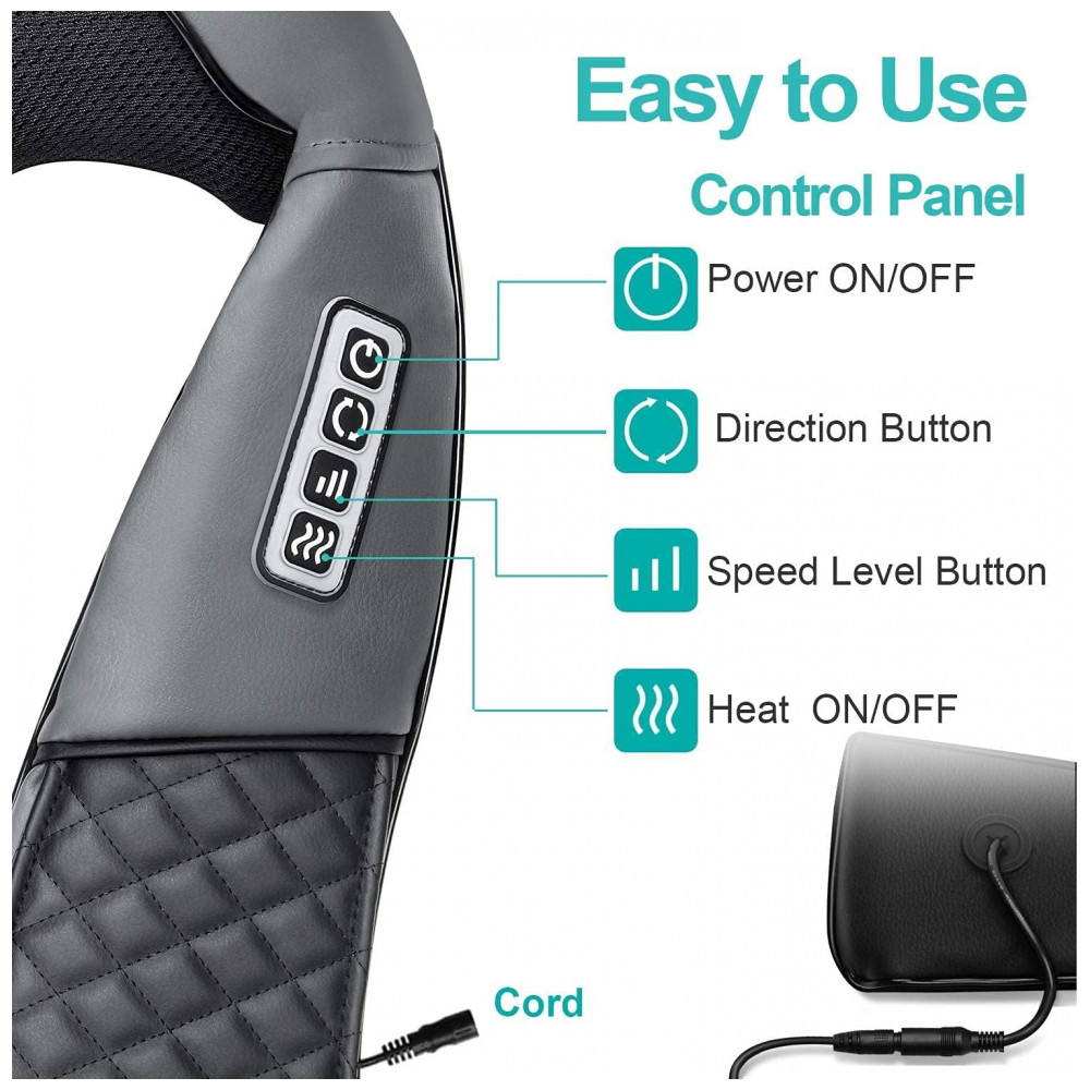 MATERIAL DURÁVEL E AMIGÁVEL PARA A PELE Este massageador de pescoço elétrico de estilo clássico é feito de couro PU de alta qualidade e tecido de malha respirável que permite que você desfrute de uma massagem confortável e relaxante.