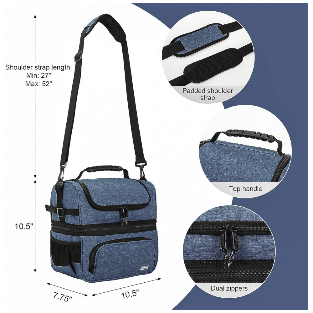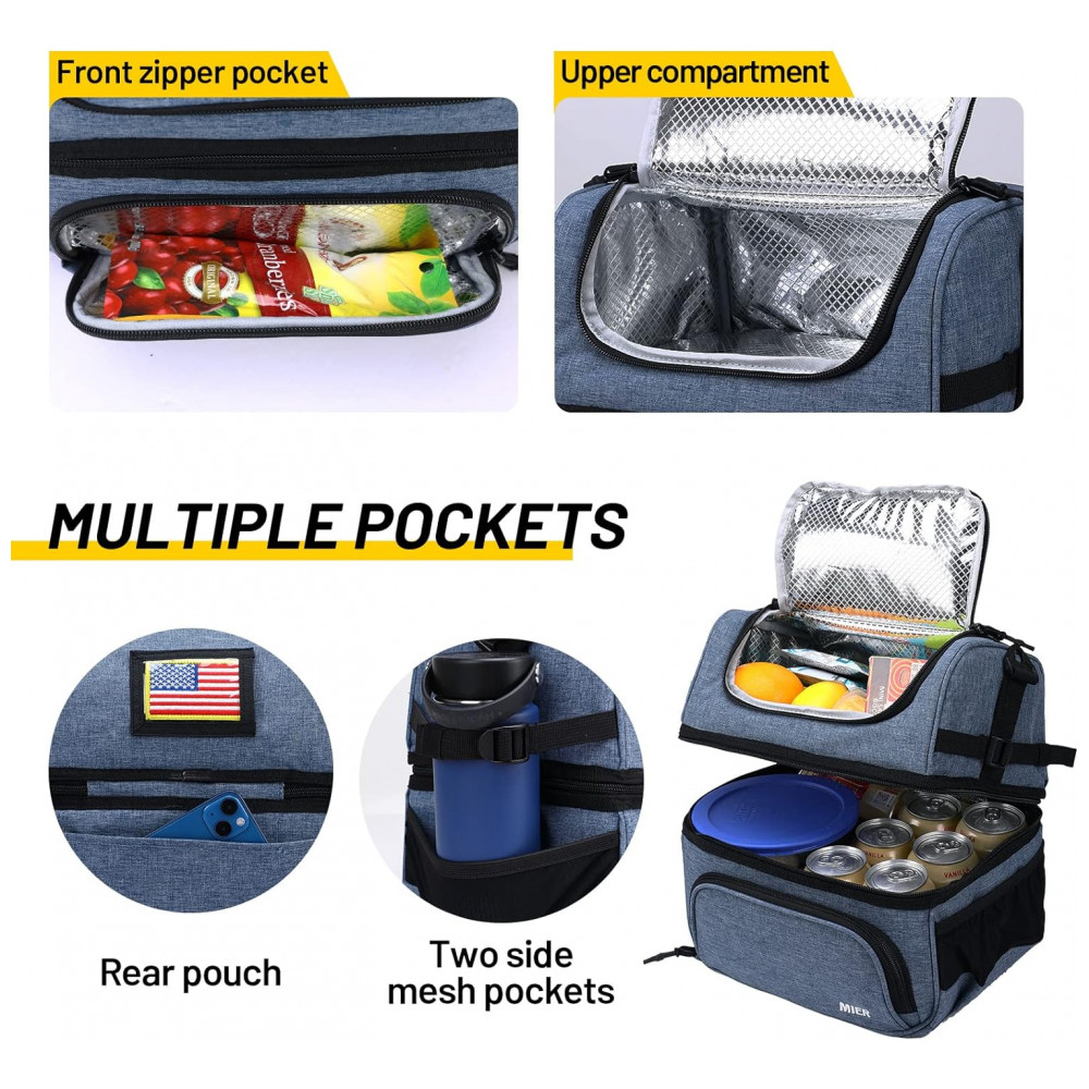 MIER Bolsa Térmica Portátil 12L, Mantém Quente, Frio Por até 5H, Azul Claro: Bolsa para lancheira com 2 compartimentos Esta lancheira oferece diferentes maneiras de embalar sua comida.