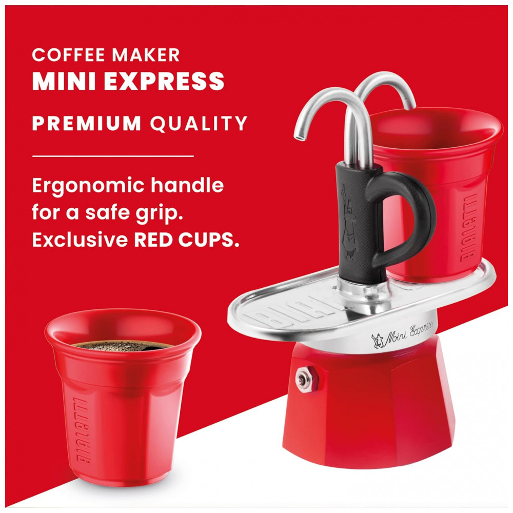 Mini Cafeteira de Café Expresso Manual Italiana 2 Xícaras, Bialetti, Vermelha