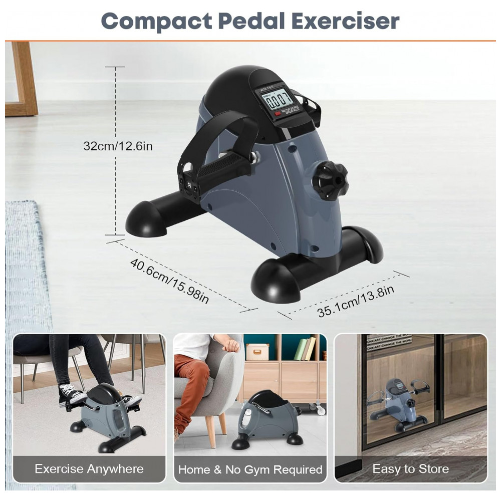 Mini Exercise Bike, AGM Under Desk Bike Pedal Exerciser Foot Cycle Arm Leg Pedal Exerciser with LCD Screen Displays