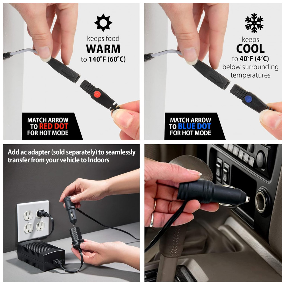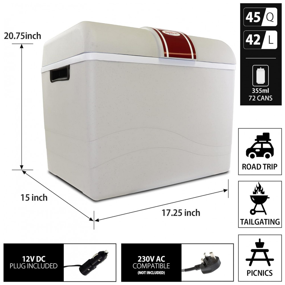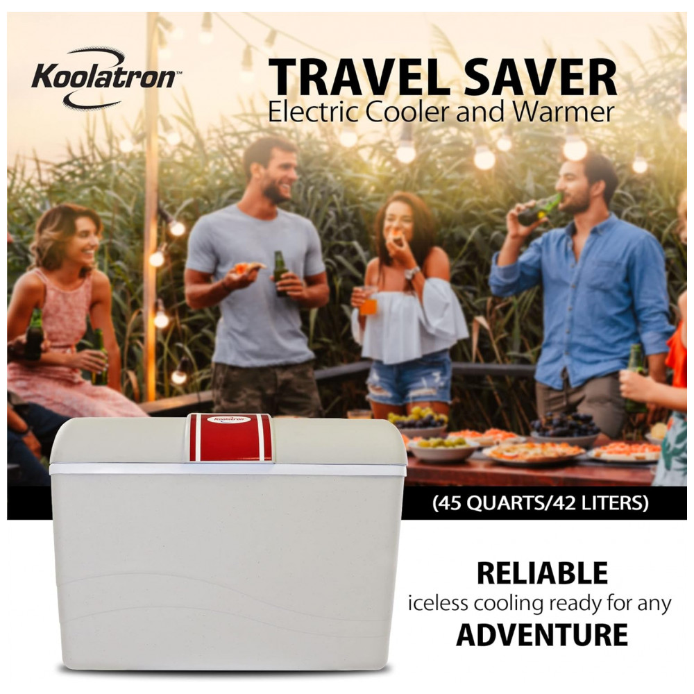 Mini Geladeira, Cooler Automotiva Elétrico Portátil 45L, 110v, KOOLATRON P95 AZ, Branco: TECNOLOGIA TERMOELÉTRICA ICELESS A tecnologia termoelétrica sem CFC e o motor do ventilador sem escovas resfriam com eficiência a 40F 22C abaixo da temperatura ambiente ou aquecem a 140F 60C, usando menos energia do que a luz traseira do seu veículo FUNÇÕES DE AQUECIMENTO E REFRIGERAÇÃO Use no modo de resfriamento para zenar carnes com segurança e manter lanches e bebidas frescos em movimento ou mude para o modo de aquecimento para levar para casa ou transportar pratos quentes para uma reunião de família DESIGN VERSÁTIL Com uma vedação de porta magnética segura e bandeja, prateleira removível, você pode usar esta unidade como um refrigerador clássico de estilo baú ou de lado como um mini refrigerador portátil