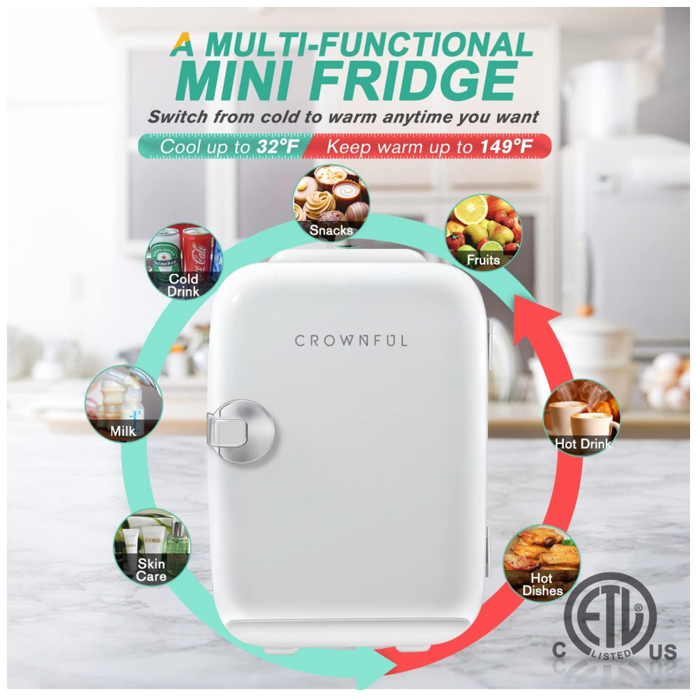 O mini frigorífico CROWNFUL é um dispositivo compacto e versátil, perfeito para armazenar alimentos, bebidas, cervejas, lanches, leite materno, cosméticos e produtos de cuidados co…