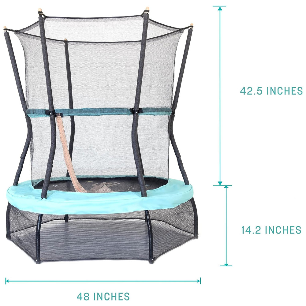 Este mini trampolim infantil é seguro para crianças de até 37 anos, com uma rede segura costurada diretamente no tapete de salto. Possui um guiador acolchoado de 360 graus que ofer…