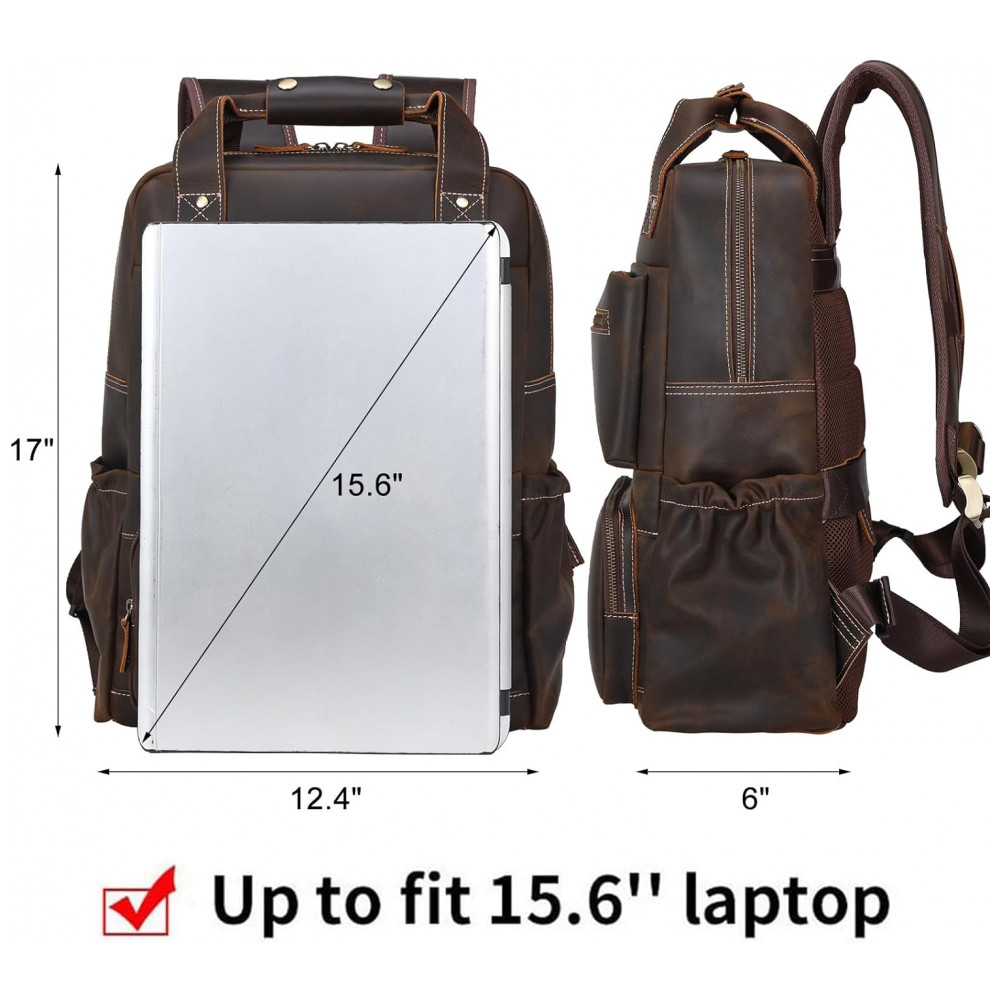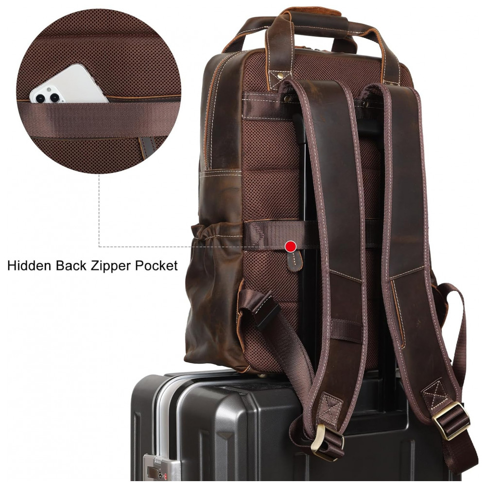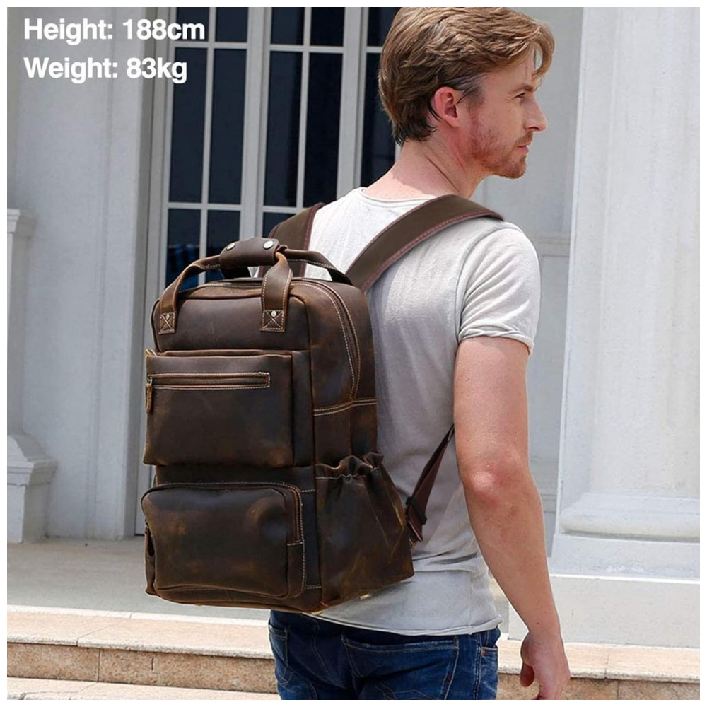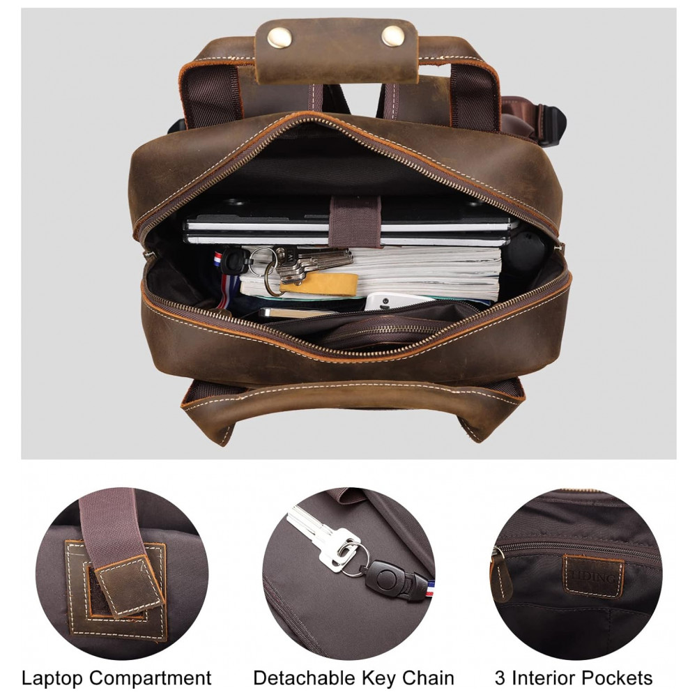 Mochila Masculina para Laptop de Couro, TIDING, Marrom