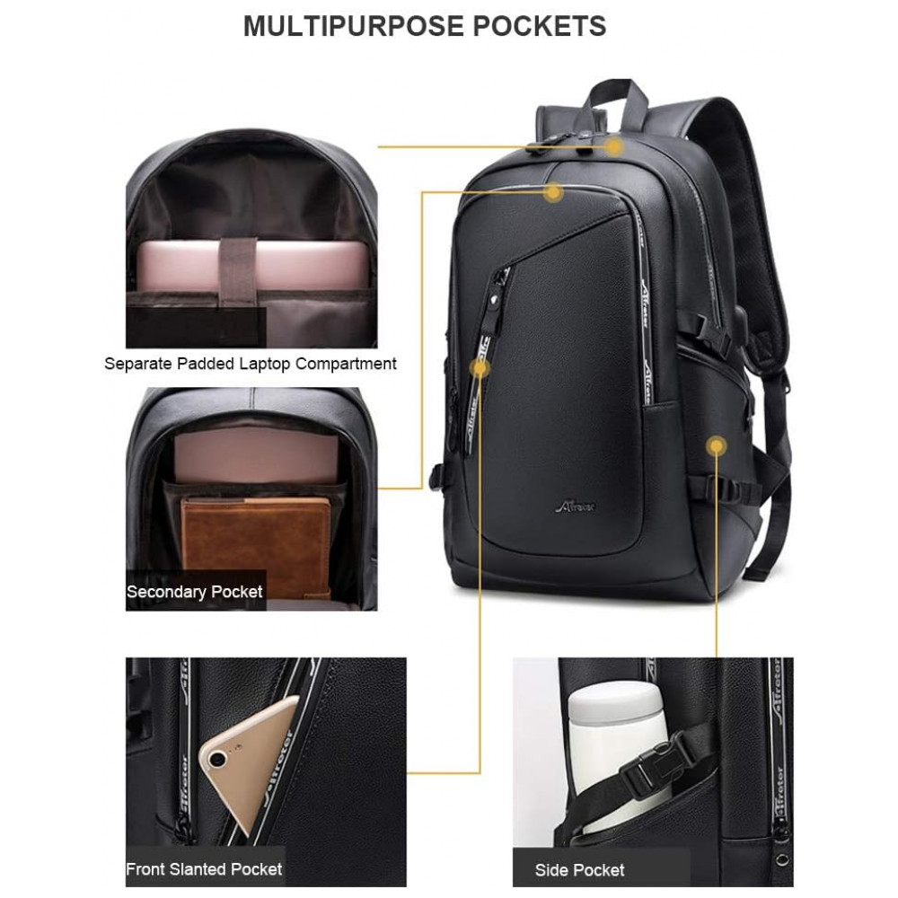 Mochila Unissex de Couro Sintético para Laptop, DYJ, Preto: COMFY STURDY Design de fluxo de ar confortável com estofamento ventilado espesso, mas macio, oferece suporte máximo para as costas.