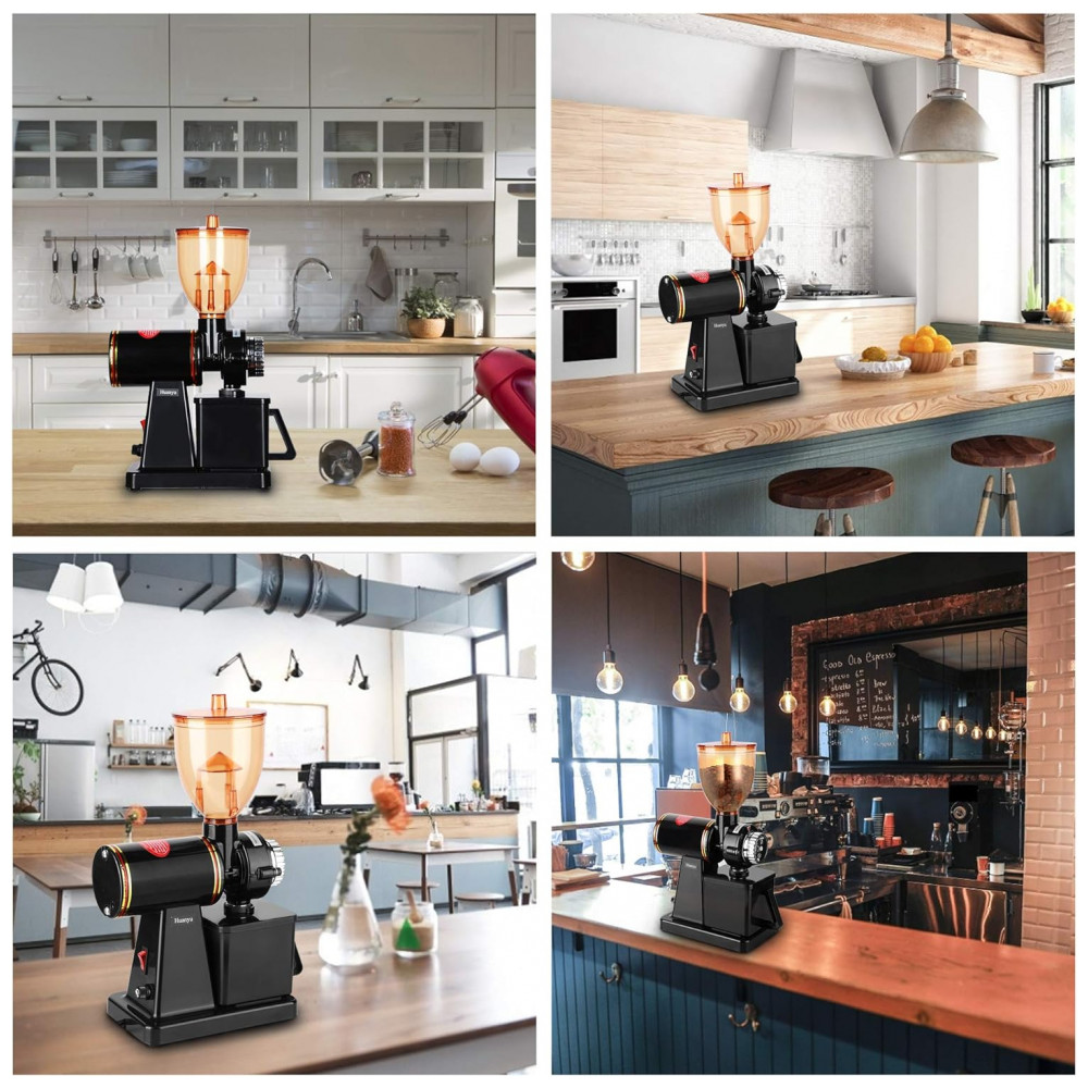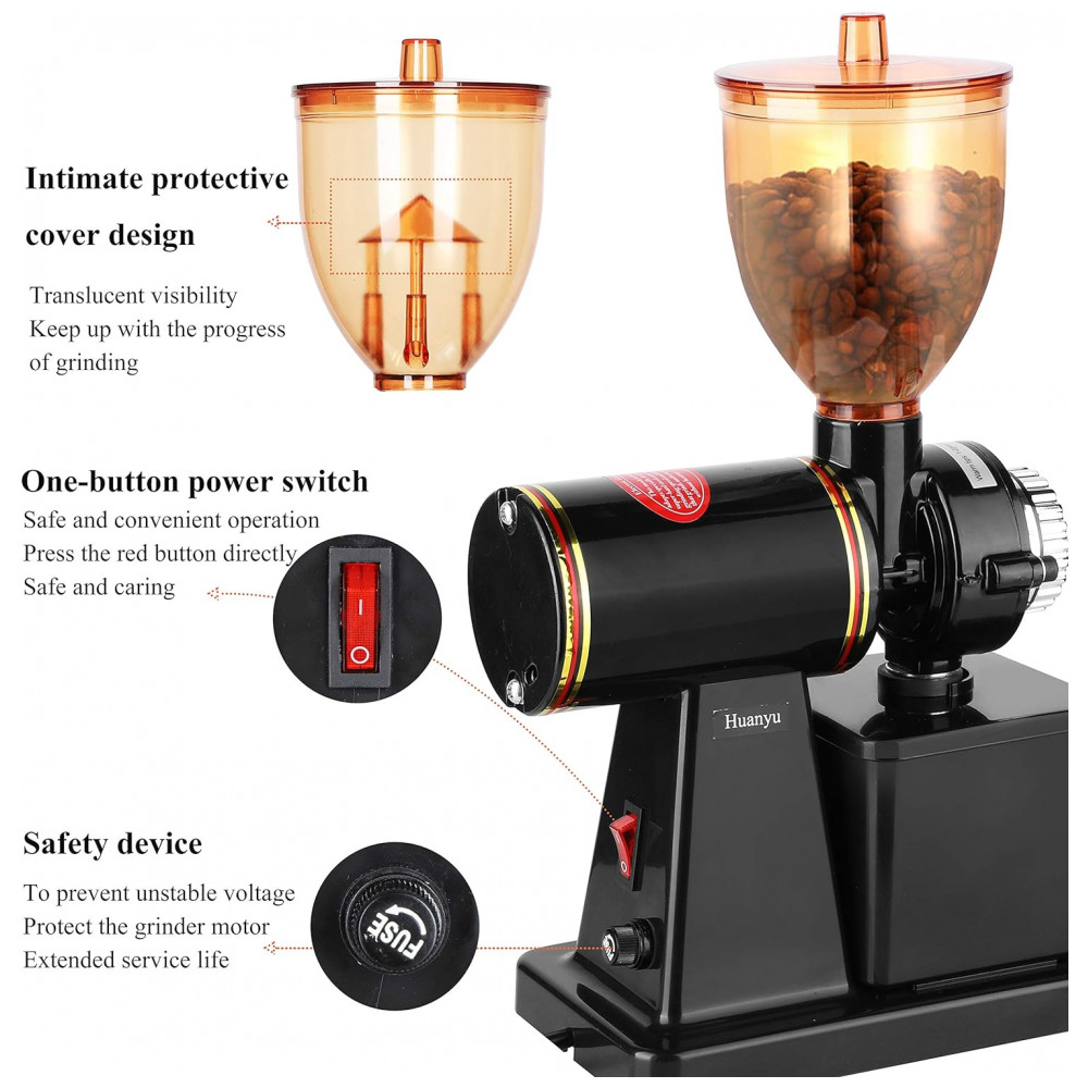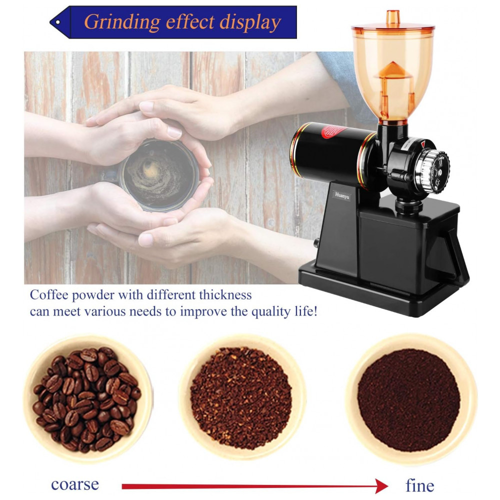 Moedor de Café 8 Níveis de Moagem até 250kg Aço Inoxidável, 200W, 110v, HUANYU, Preto: COM UM MOTOR ESPECIAL Alto desempenho e alta eficiência, para garantir a operação estável e de longo prazo do moedor, e o som do moedor é muito baixo.