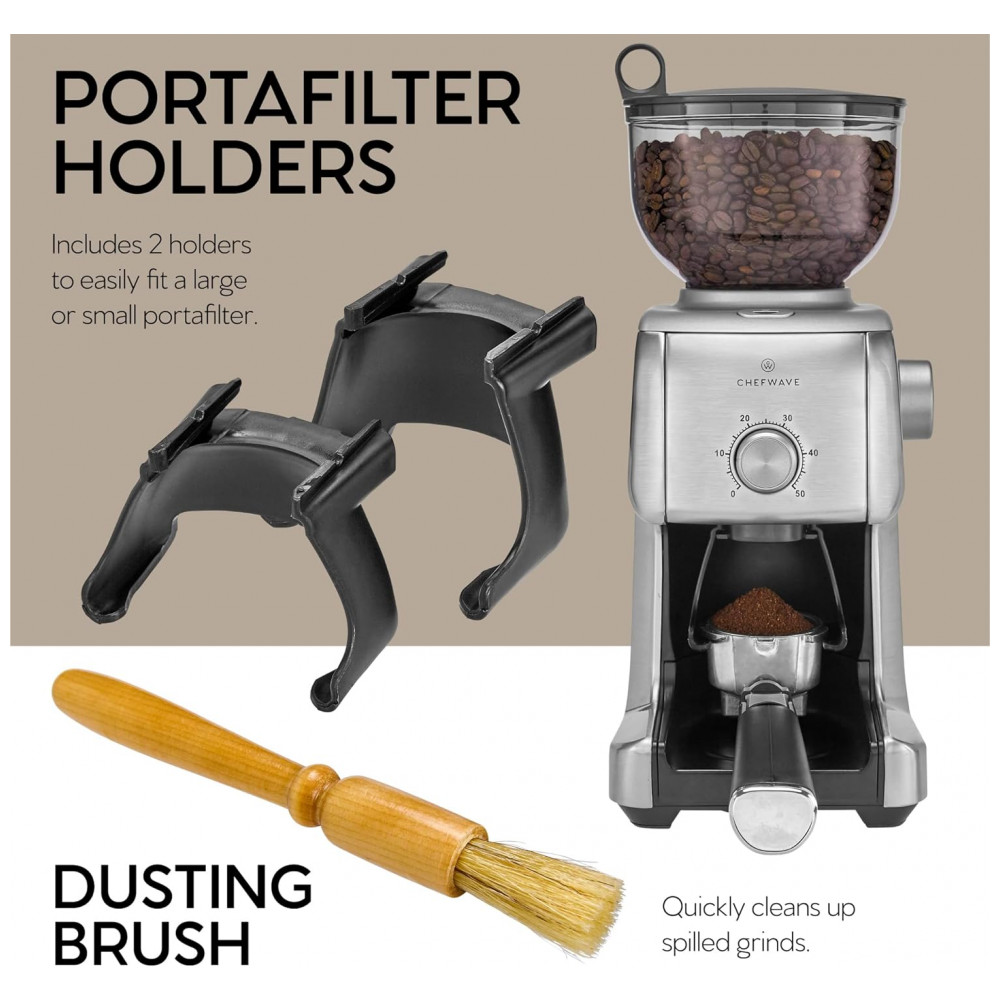 Moedor de Café Cônico 16 Configurações e Acessórios, CHEFWAVE CW CG01SS, Cinza