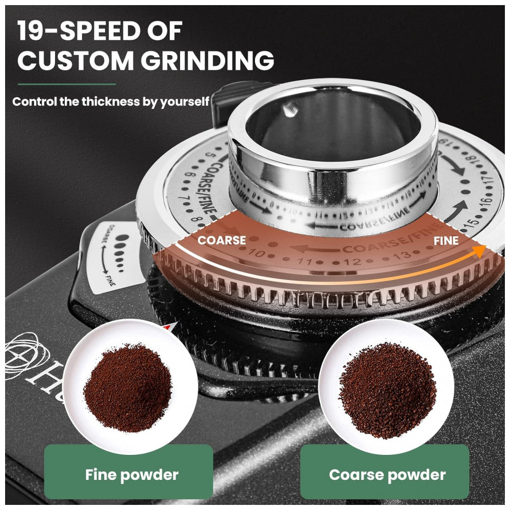 Moedor de Café Elétrico 19 Níveis de Moagem até 1kg Aço Inoxidável, 250W, 110v, HUANYU, Preto: Moagem de alta precisão ajuste fino contínuo, adequado para todos os tipos de equipamentos de café.