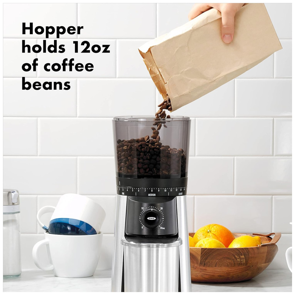 Moedor de Grãos de Café BREW, Até 110gr, Aço Inox, 110v, OXO 8717000, Prateado