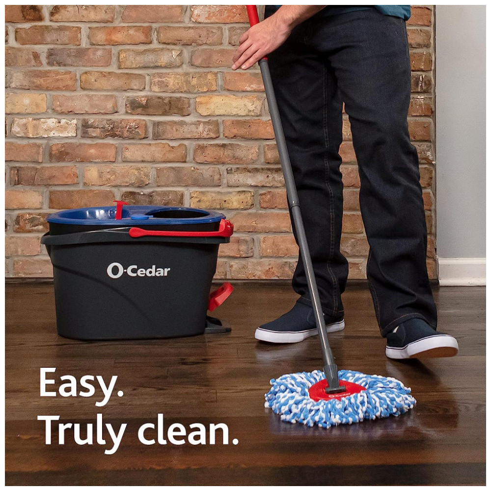 Mop Giratório de Microfibra com Sistema Flash Limp com Balde e 1 Refil Extra, O Cedar, Cinza: ÁGUA CONTINUAMENTE LIMPA O sistema de limpeza de pisos EasyWring RinseClean Microfiber Spin Mop Bucket da O Cedar destaca nossa tecnologia patenteada de caçamba de câmara dupla, que apresenta tanques de água limpos e sujos separados, facilitando a limpeza contínua com água limpa É em todas as superfícies do piso duro, incluindo madeira acabada, madeira, laminado, ladrilho, vinil e muito mais.