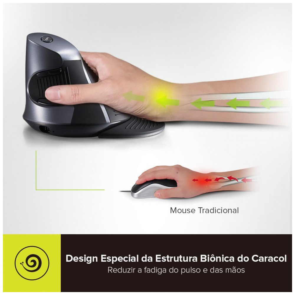Design vertical ergonômico Mouse vertical exclusivo com design biônico de caracol especial. Com parte traseira curva especial, ranhura para o polegar, layout de botões delicados e…