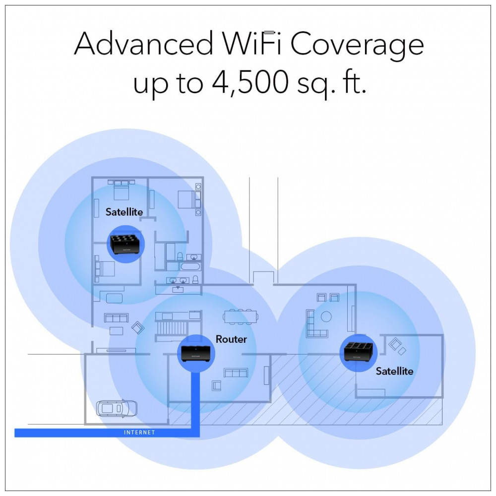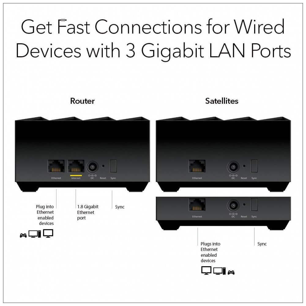 NAX1800 Roteador Wi Fi Mesh Vel 1,8 Gbps 1,5 GHz Área 418m2 25 Aparelhos, NETGEAR MK63S 100NAS, Preto