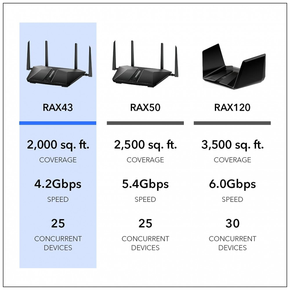 Nighthawk AX4200 Roteador Wi Fi Vel 4.2 Gbps 20 Aparelhos Área 185m2, NETGEAR RAX43 100NAS, Preto