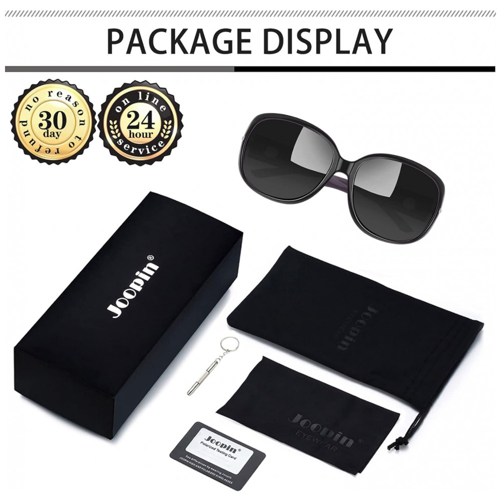 O PACOTE INCLUI Óculos de sol divertidos Joopin para mulheres x1, caixa macia x1, bolsa requintada x1, pano de lente x1, cartão de teste polarizado x1.