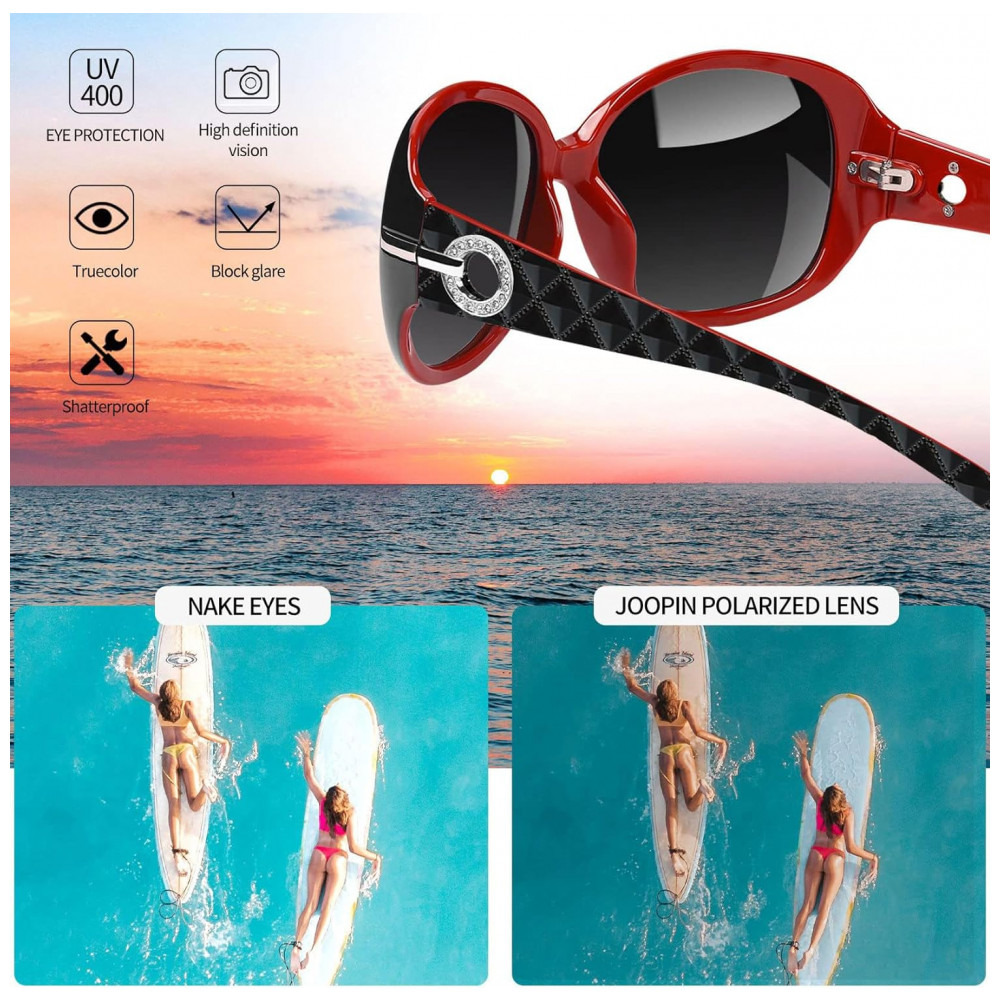 Óculos de Sol Feminino com Proteção UV, Joopin A23, Preto, Vermelho e Cinza: importado.