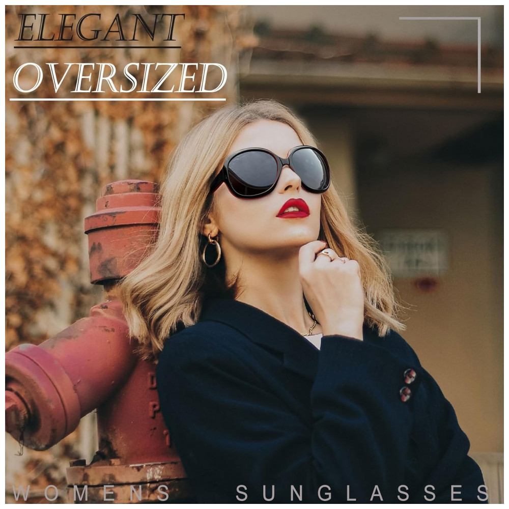 Óculos de Sol Feminino com Proteção UV, Joopin B06, Preto e Vermelho