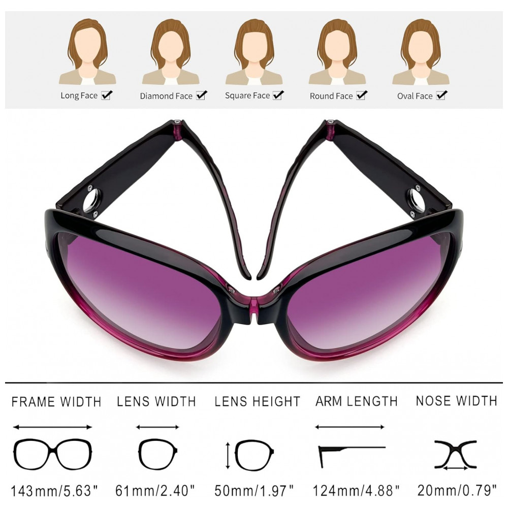 Óculos de Sol Feminino Dobrável com Proteção UV, Joopin A27, Roxo Gradiente: importado.
