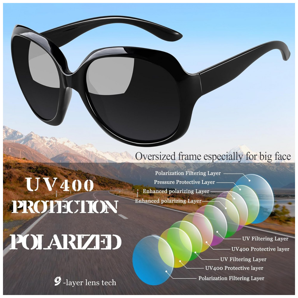 Os óculos de sol grandes Joopin são feitos de lentes UV400 polarizadas, molduras de plástico de alta qualidade, leves