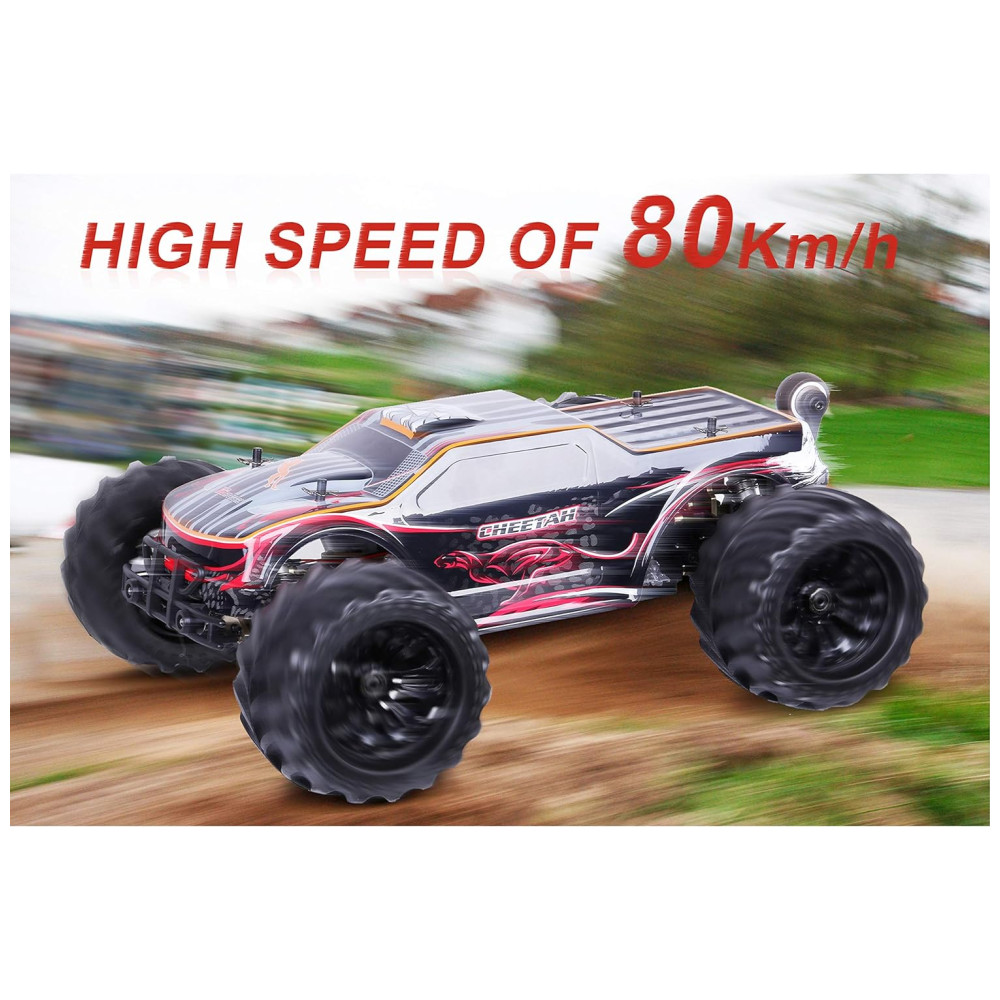 Surpreendentemente rápido 80 km , h com tração nas quatro rodas Equipado com o poderoso motor sem escova 3670 2500KV e com o ESC sem escova HOBBYWING 120A, permitindo alcançar a ve…