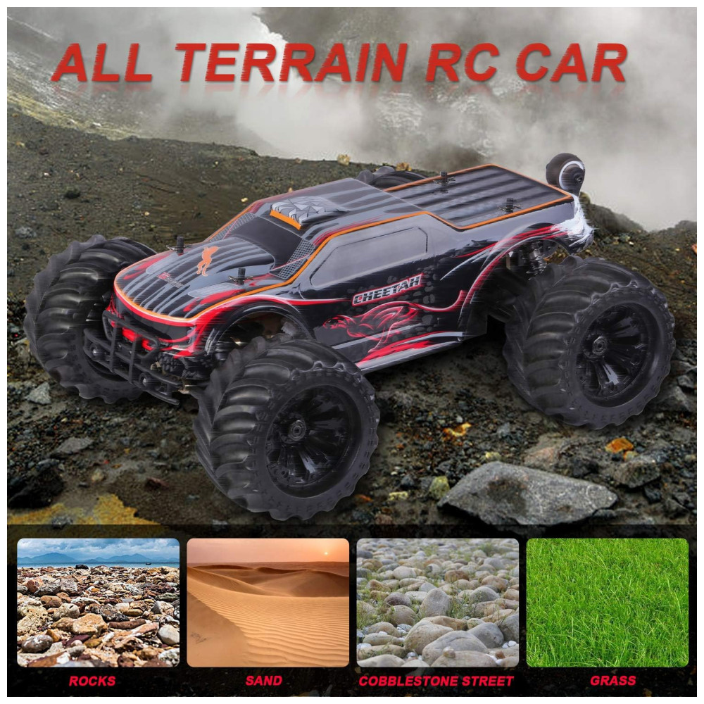 O motor totalmente à prova dágua e os acessórios elétricos ESC permitem que ele funcione em qualquer terreno e clima , para que você possa executá lo nas poças, pedras, praia, areia, neve e grama molhada, de acordo com o seu coração.
