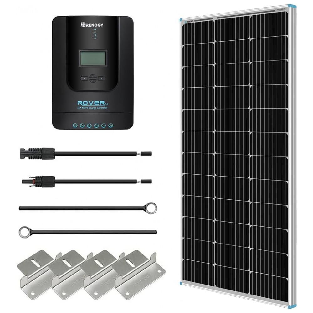 Painel Solar, Monocristalino, com controlador de carga, 100W, 12V, 1 painel, RENOGY RNG KIT STARTER100D RVR40, Preto