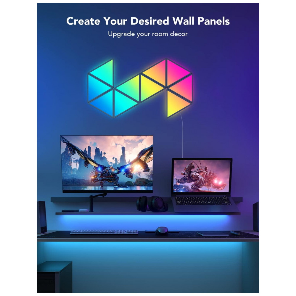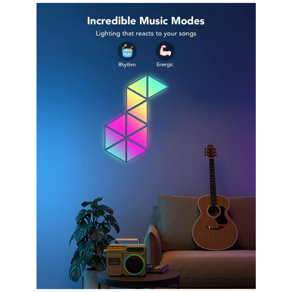 Iluminação DIY Escolha entre dezenas de padrões recomendados em nosso aplicativo para sua referência ou crie seu layout de painel triangular exclusivo.
