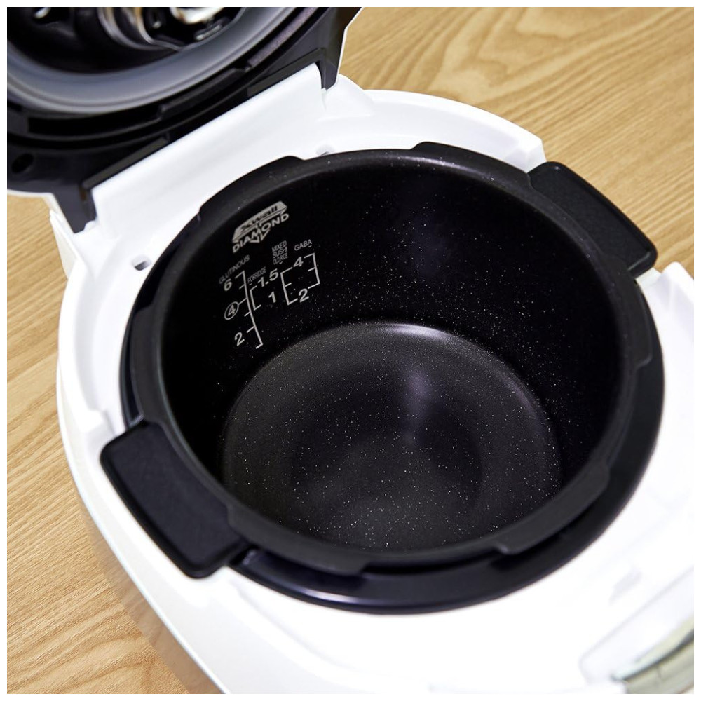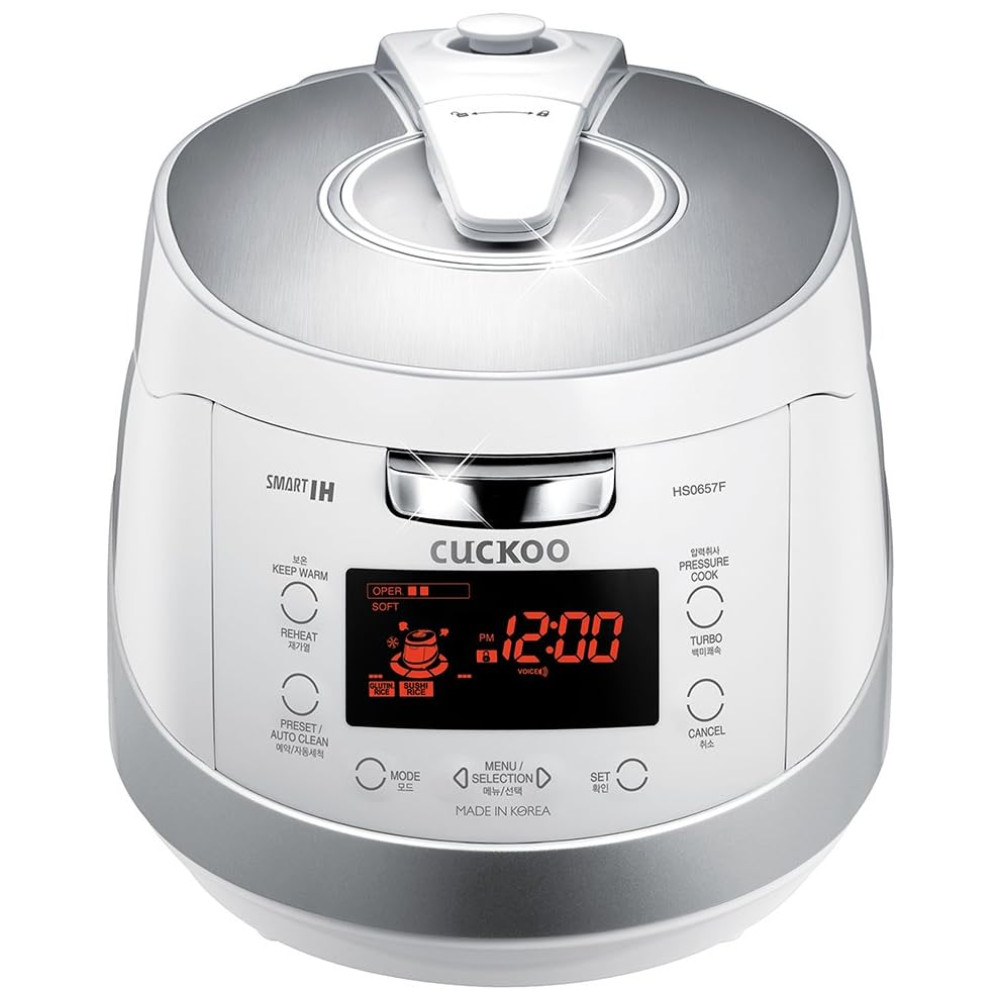 panela de arroz de pressão de aquecimento por indução de 6 xícaras revestimento antiaderente, branco, CUCKOO CRP HS0657F, Branco: PANELA MULTI FUNÇÕES Panela elétrica de arroz de pressão com 11 funções de cozimento diferentes TELA COM PAINEL DE BOTÕES Tela LCD com controles de botão CONSTRUÇÃO DE POTENCIÔMETRO DURÁVEL vaso classificado com antiaderente com interior de diamante de parede e exterior extremo de titã E SILENCIOSO A tampa de vapor macio de fluxo duplo oferece uma experiência de cozimento mais segura e silenciosa LIMPE SE Funções de limpeza automática a vapor para manter a panela de arroz limpa e sem manchas em nenhum momento