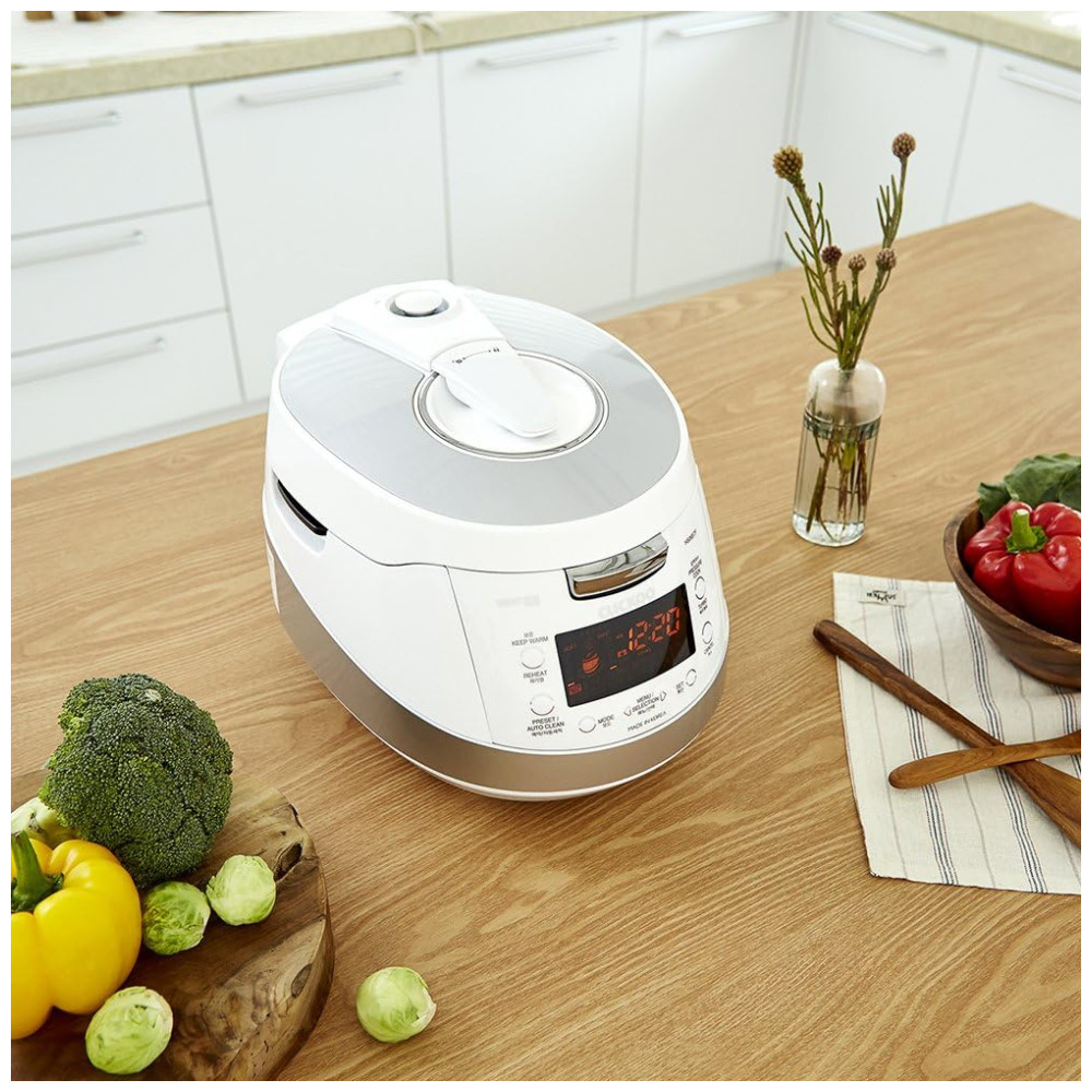 panela de arroz de pressão de aquecimento por indução de 6 xícaras revestimento antiaderente, branco, CUCKOO CRP HS0657F, Branco