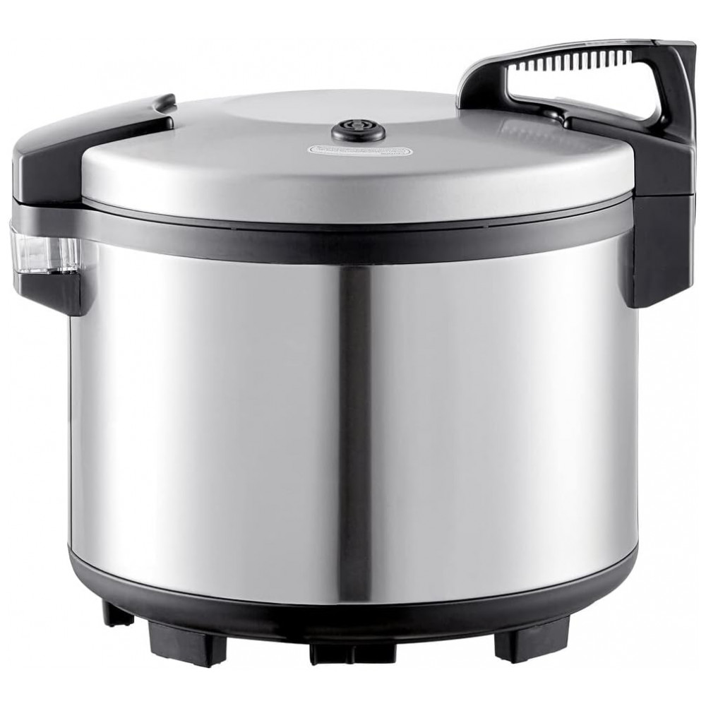Esta panela elétrica de arroz possui construção de aço inoxidável de parede dupla isolada que manterá sua comida úmida e quente por horas.