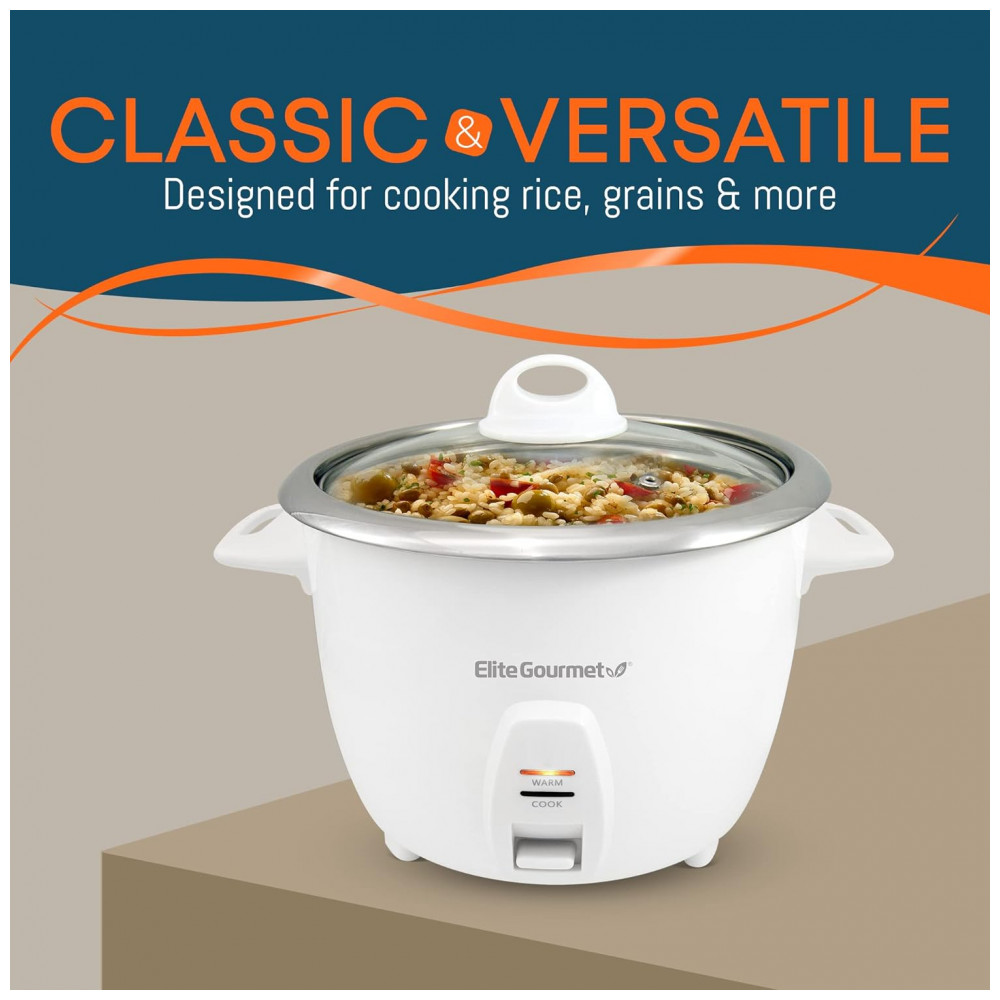 Panela de Arroz Elétrica 2.4L 300W, 110v, ELITE GOURMET ERC 2010, Branco: COZINHE O ARROZ MOLHO E MOLHE MOLHO TODAS AS VEZES sem perder tempo com a panela A panela elétrica de cozinha Elite Cuisine ERC 201 está a ajudar lo a xícaras até cozinhas 5 xícaras não cozidas de seu jasm profissional, basmati ou arroz integral favorito sem esforço Chega de esperar a água, não precisa mais ficar olhando e adivinhando se o cozido Nossa nova panela de arroz tornará sua vida mais fácil e cozinha para sua família 100 complicada QUER ARROZ PERFEITAMENTE COZIDO APENAS CONFIGURE E ESQUEÇA Doente e cansado de arroz mal cozido ou cozido demais A panela elétrica de arroz Elite Cuisinerá seu arroz por igual e, em seguida, mudará automaticamente para a função profissional Manter aquecido, o que garantirá que seu delicioso seja fresco e quente por antes de servir Elimine todas as suas receitas ao sushi ou arroz preto e suas receitas favoritas às suas receitas ou suas receitas sem esforço REVESTIMENTO POTENCIAL INTERNO DE AÇO INOXIDÁVEL LIVRE Ao contrário das panelas de alumínio, nossa panela de arroz possui uma panela de grau cirúrgico, que é mais resistente de panela e de grau cirúrgico Economize tempo e, já que nosso pote precioso interno de aço é fácil de corrigir o ritmo e pode levar a qualquer erro sem perder o ritmo E a melhor parte Você pode remover e servir seu delicioso arroz direto da panela A IDÉIA DO PRESENTE DE ZÉM TUDO INCLUÍDO para uma experiência culinária descomplicada Como alças de toque frio evit, a tampa de proteção também permite Além disso, a panela de arroz vem com 2 acessórios BÔNUS um copo prático para que você possa parar de servir uma certa quantidade de arroz e uma espátula de servir conveniente Mime seus amigos ou familiares que adoram arroz com a panela elétrica multifuncional Elite Cuisine GRANDE CAPACIDADE cozinha até 10 xícaras, 2,4 mL de arroz cozido para toda a família e muito mais Esta panela de arroz cozido 5 xícaras, 1,2 mL de arroz cru e 10 xícaras de arroz cozido o suficiente para várias porções