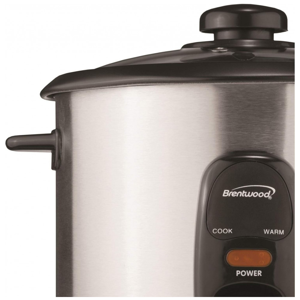 Panela de Arroz Elétrica 2L Multifuncional com Desligamento Automático, 110v, BRENTWOOD TS 15, Prateado: Esta panela de arroz de aço inoxidável de 8 xícaras de 500 watts da Brentwood apresenta uma panela interna revestida com antiaderente e desligamento automático para ajudar a evitar que o arroz queime.
