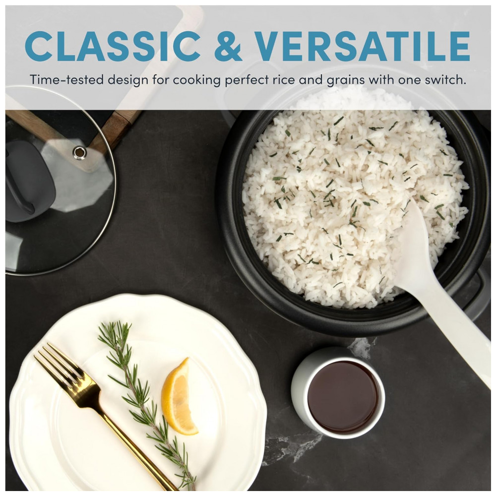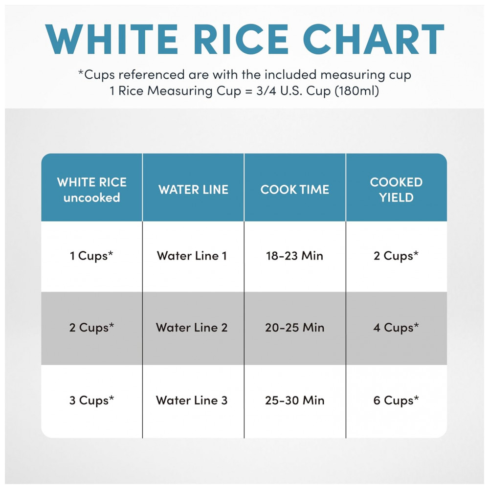 A capacidade para 3 xícaras é perfeita para arroz, omeletes, sopas, aveia, macarrão e muito mais Limpeza fácil A panela fornecida tem durabilidade máxima e pode ser lavada na máquina de lavar louça para facilitar a limpeza.