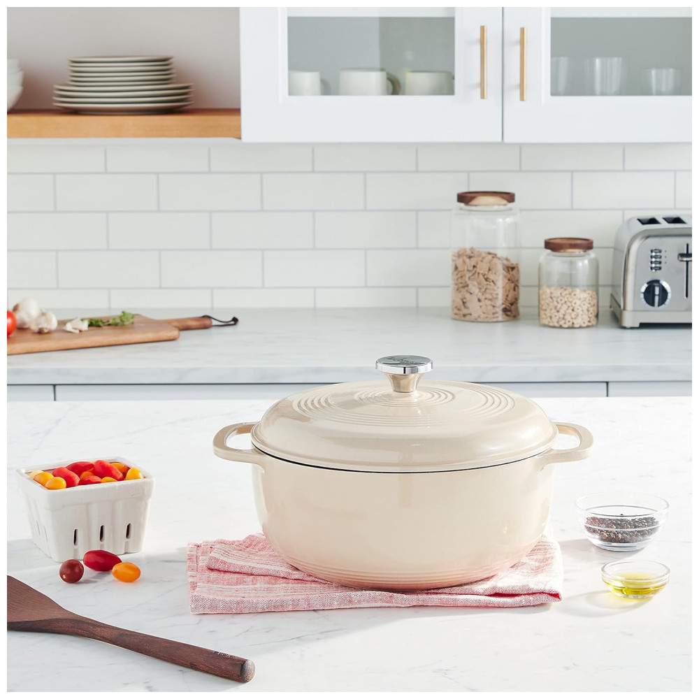 Panela de Ferro Fundido 6 Litros Forno Holandês Esmaltado e Antiaderente, Sândalo, LODGE EC6D07, Branco