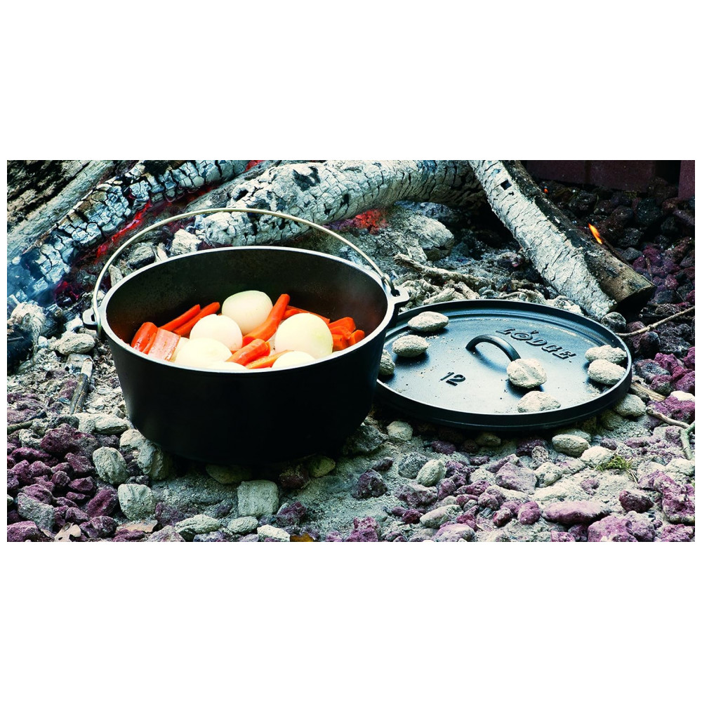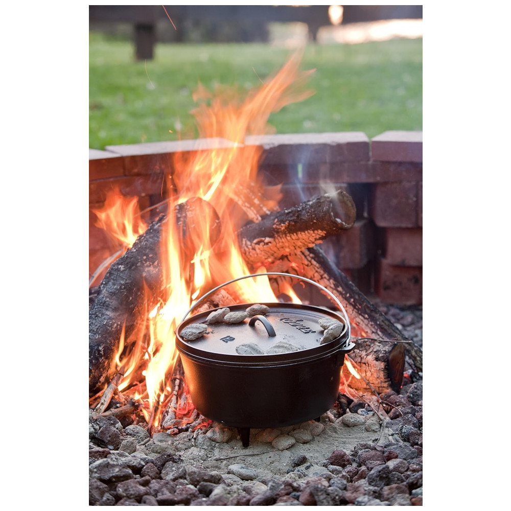 8 QT. FORNO HOLANDÊS DO ACAMPAMENTO PROFUNDO. O fogão de acampamento portátil Lodge é a panela que faz tudo. A tampa flangeada contém carvão quente e se inverte para usar como chap…