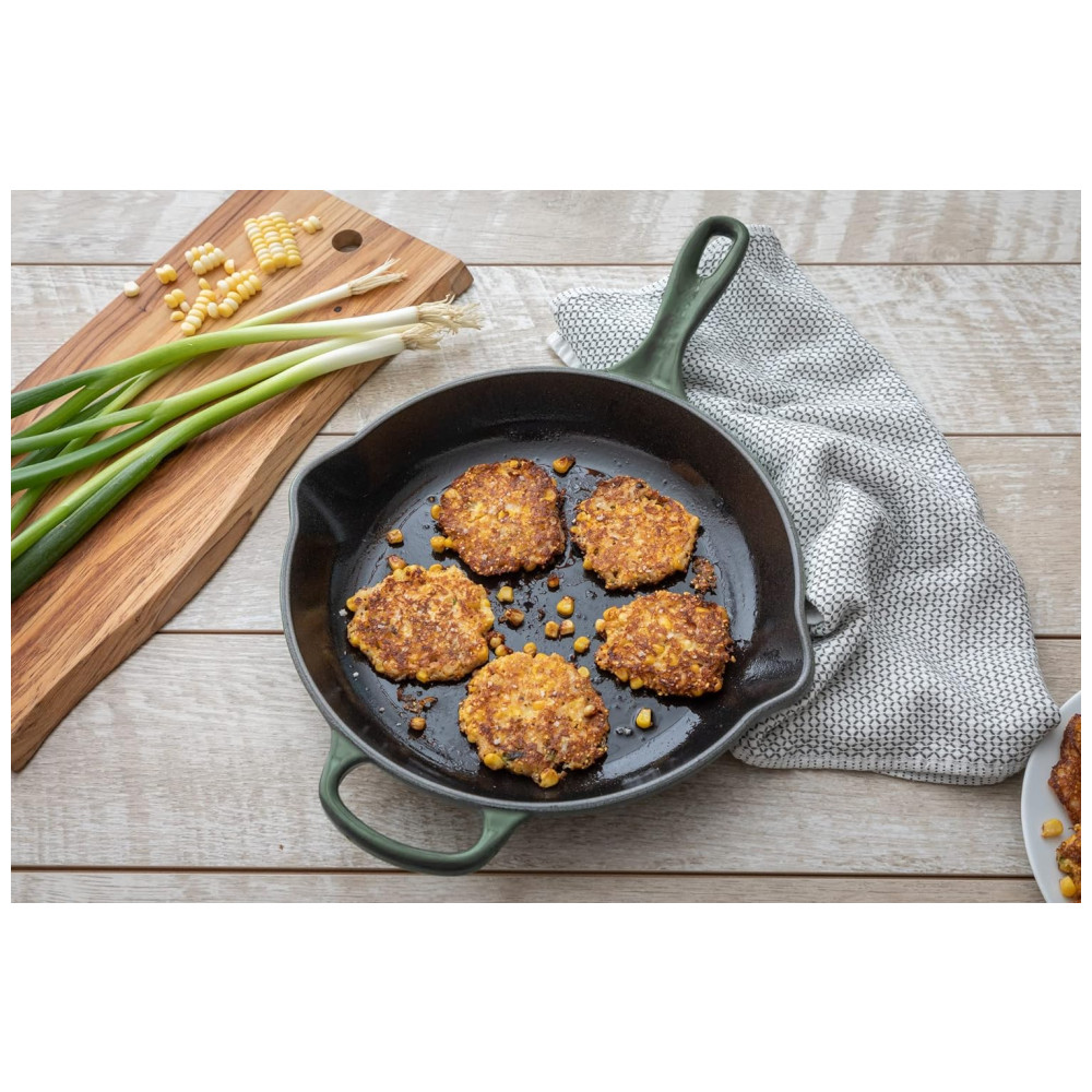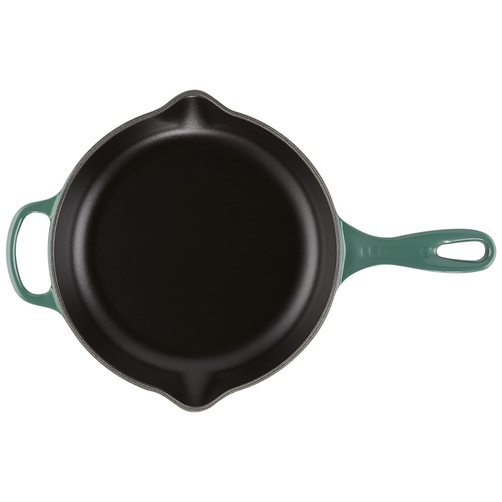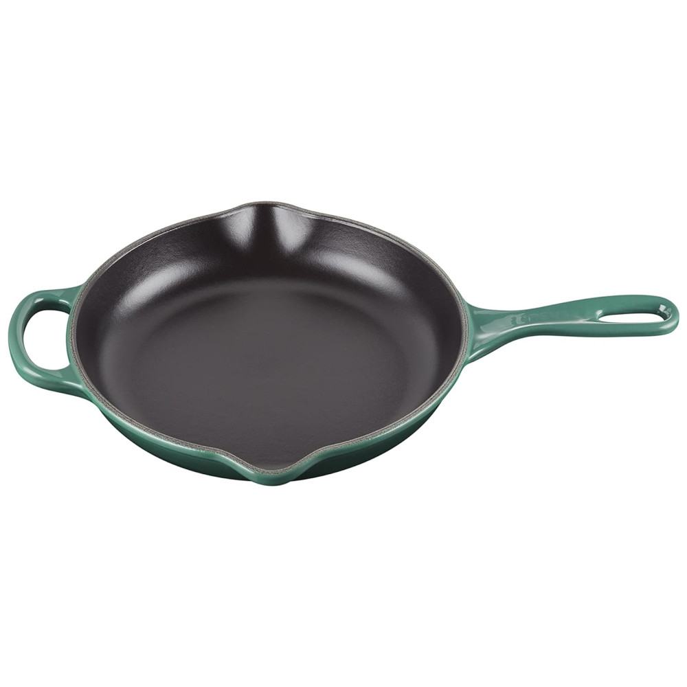 Panela de Ferro Fundido Pré Temperada, com Alça de Metal, LE CREUSET LS2024 23795, Verde: A frigideira pesada requer muito pouco óleo, o que a torna uma excelente escolha para cozinhar com baixo teor de gordura Otimizado para um calor estável e uniforme, o interior de esmalte aprimorado da Le Creusets resiste a manchas, opacidade e desgaste O interior de esmalte preto não requer nenhum tempero adicional, ao contrário de outras panelas de ferro fundido A alça auxiliar de laço grande facilita o levantamento da panela e fornece uma melhor aderência, mesmo usando luvas de forno A construção em ferro fundido esmaltado fornece retenção de calor superior.