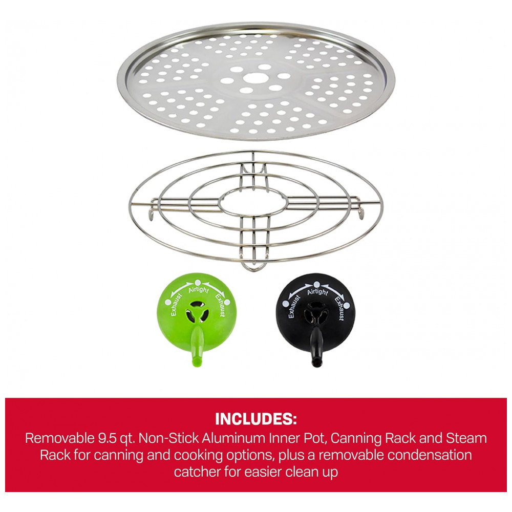 INCLUI Grade para enlatamento, grade para vapor e coletor de condensação removível para facilitar a limpeza e oferecer opções extras de cozimento.
