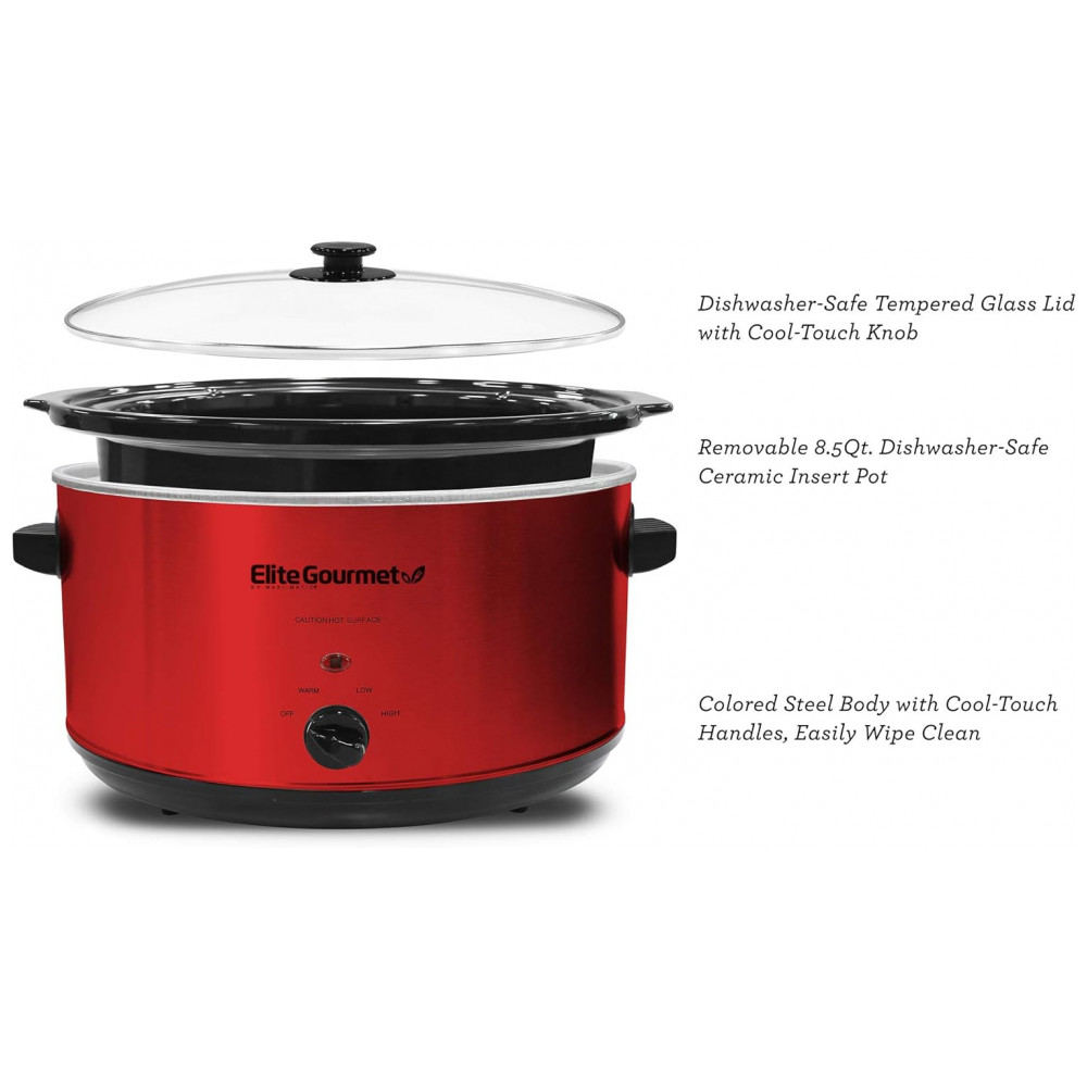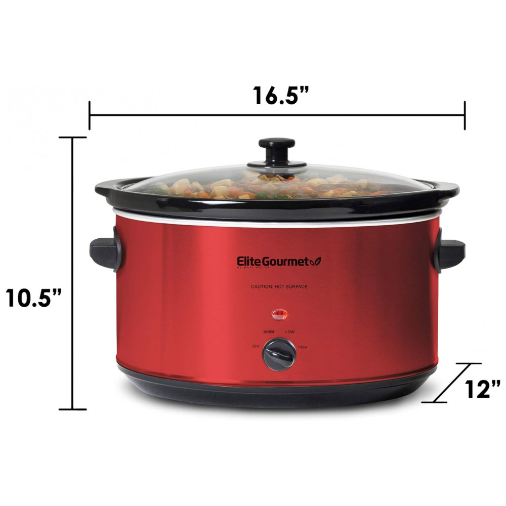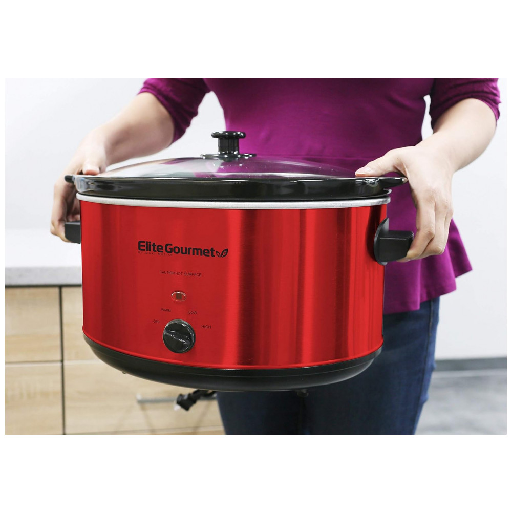 Panela Elétrica Cerâmica 8L, Temperatura Ajustável 300W, 110V, ELITE GOURMET MST 900RXT, Vermelho: Apresentando a Panela de Cozimento Lento Elite Gourmet MST 900RXT com 8 litros de capacidade, ideal para alimentar toda a família e convidados com praticidade e sabor.