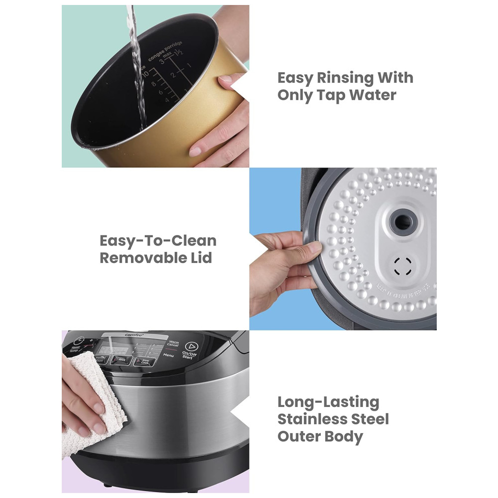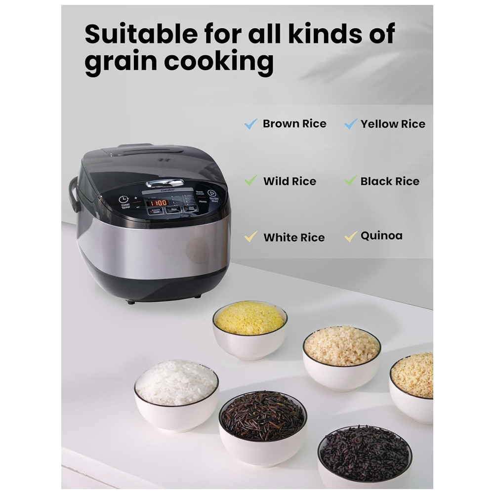 Faça comida especial e saudável em um fogão sem possuir 5 ou mais aparelhos diferentes Alta Segurança Panela elétrica de arroz múltipla COMFEE operando sob pressão normal com força, é considerada uma alternativa segura de todos os tipos de panela de pressão ou cozinhar no fogão.