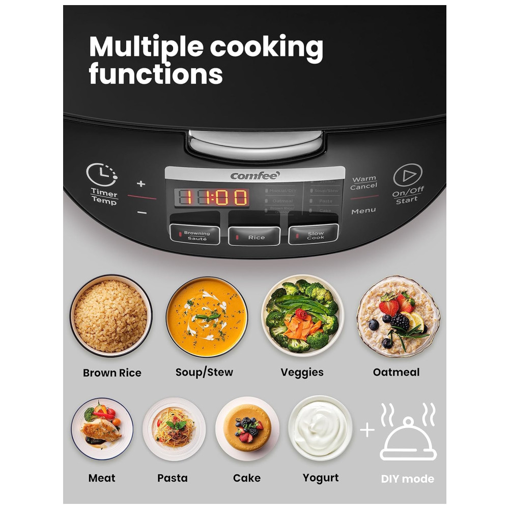 Panela elétrica de arroz com cozimento lento, vapor, refogue, máquina de iogurte, COMFEE MB FS5077, Preto