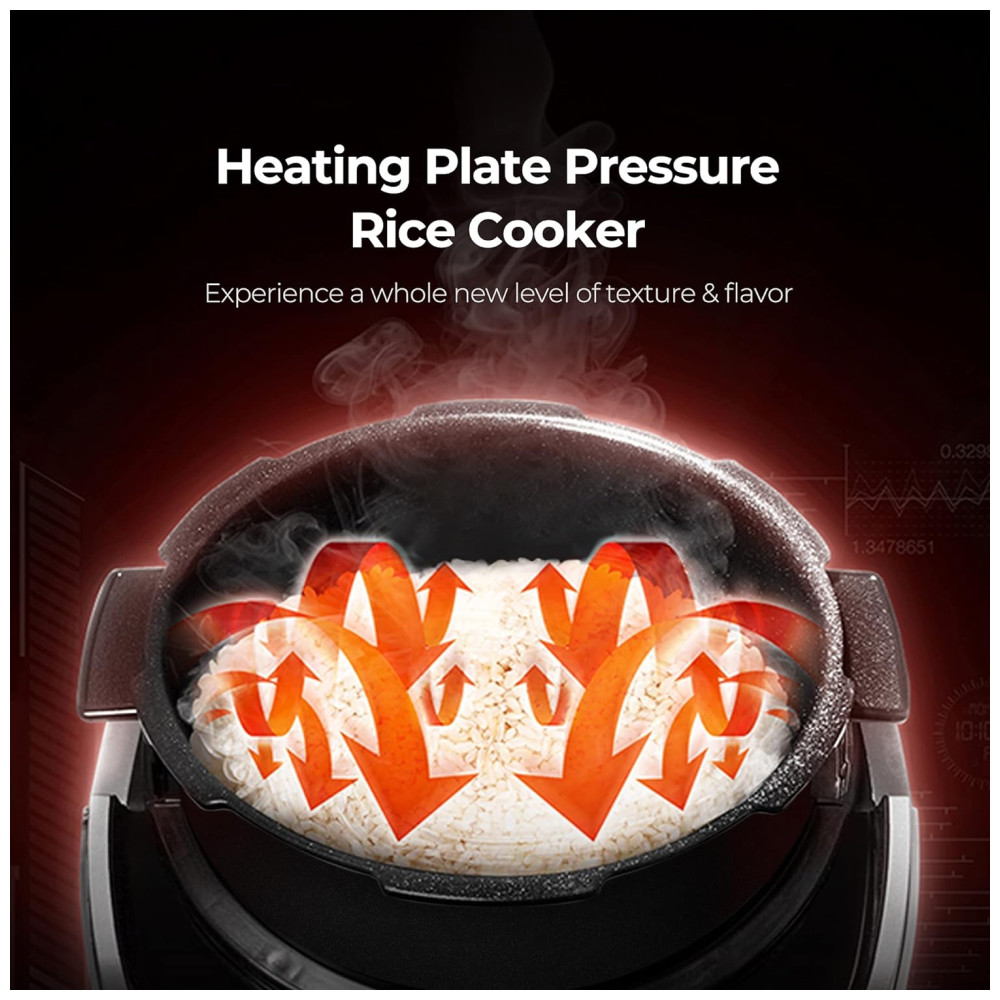 Cozimento mais rápido e inteligente apresenta lógica difusa e algoritmo de cozimento inteligente, nossa panela elétrica de arroz de 10 xícaras detecta habilmente o tipo de grão, a temperatura e o tempo de cozimento Utilizando o aquecimento por indução, seus pratos favoritos ficam prontos em nenhum momento, sem adivinhações.