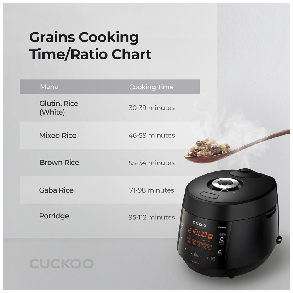 Panela Elétrica de Arroz de Pressão Multifuncional e Programável, Panela Antiaderente, preta, CUCKOO CRP PK1001S, Preto: Essencial Prepare GABA perfeito, arroz misturado, mingau e muito mais.