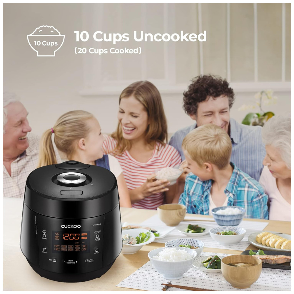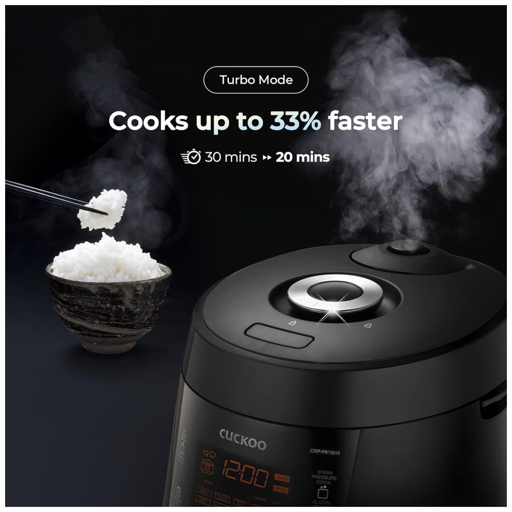 Panela Elétrica de Arroz de Pressão Multifuncional e Programável, Panela Antiaderente, preta, CUCKOO CRP PK1001S, Preto