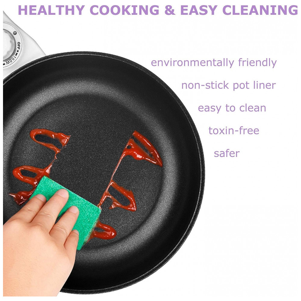 Esse item indispensável para o seu dormitório ou casa vai superar todas as suas expectativas Fácil de Limpar e Cozinha Saudável A panela elétrica Dezin possui um revestimento antiaderente, que evita que os alimentos grudem e facilita a limpeza.
