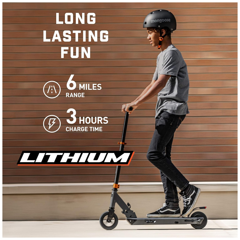 Patinete Elétrico Infantil com Velocidade até 24 km h, Guiador e Estrutura de Alumínio, Freio de Pé Traseiro, Bateria e Carregador Incluídos, 110V, Mongoose, Cinza: Funtoride é uma scooter elétrica com alto torque, ideal para crianças mais velhas ou adultos.