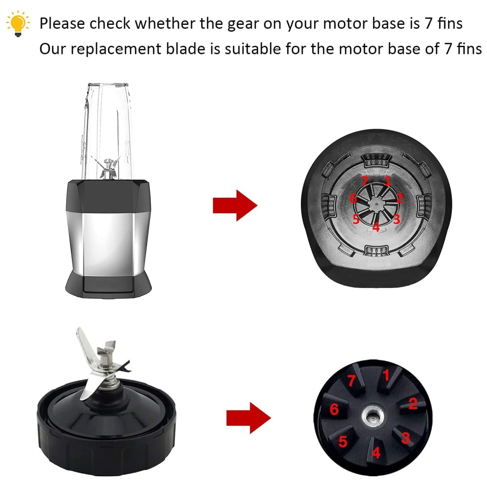 Antes de comprar, verifique o diâmetro da lâmina original e confira as aletas no eixo de borracha da lâmina Versão Atualizada A montagem da lâmina de 7 aletas é feita de plástico de grau alimentício e aço inoxidável, com rolamentos de aço inoxidável atualizados que são à prova de vazamentos, sem ferrugem e livres de BPA.